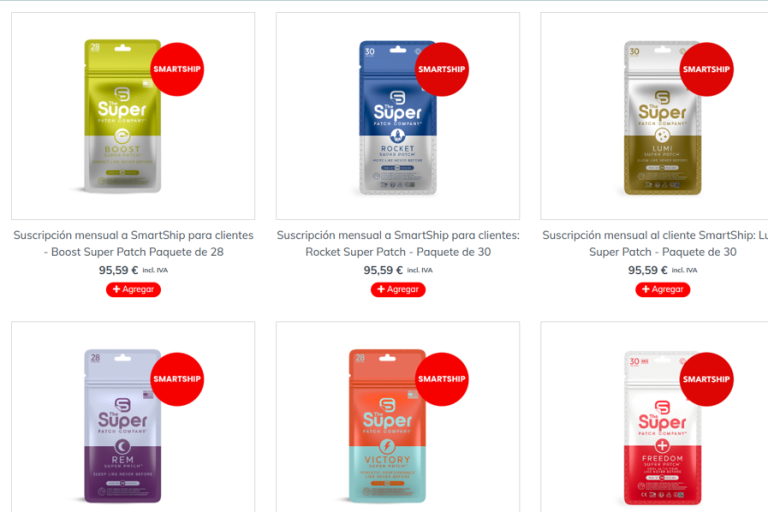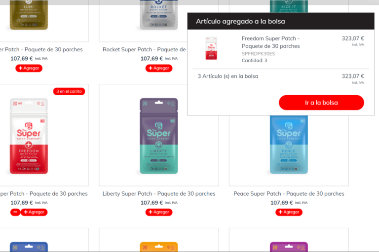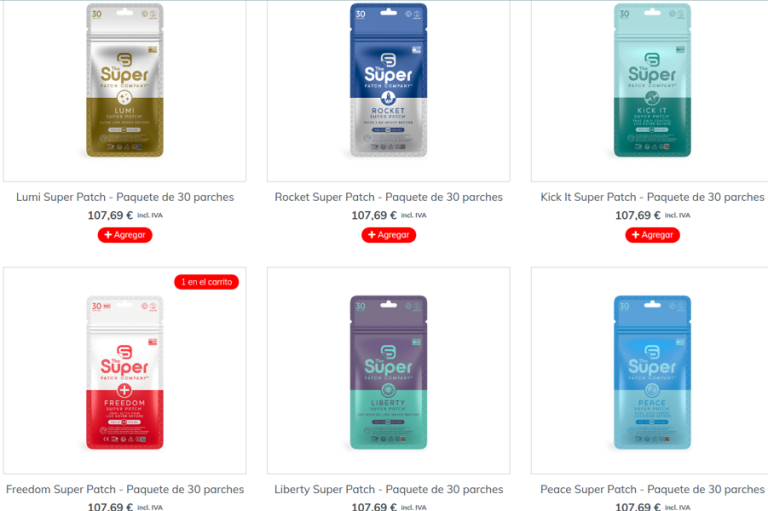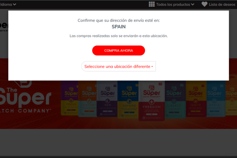 Tras confirmar tu idioma y región, accederás al catálogo de productos de Super Patch, donde verás los parches que hay disponibles en tu país.